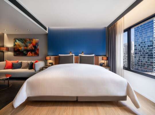 A contemporary hotel at the heart of the city with high-end design, a Thai-inspired restaurant and cool and comfy rooms.