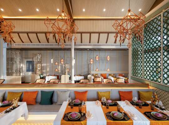 A stylish all‑day dining venue showcasing Thai and international cuisine using fresh local ingredients. Expect vibrant flavours, elegant presentation and a relaxed indoor–outdoor setting overlooking the gardens and pool — the perfect spot for long, lazy breakfasts and atmospheric dinners.