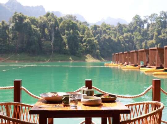 The resort’s floating restaurant and bar brings the flavours of Thailand to one of the most memorable dining settings imaginable. Here, you can enjoy authentic Thai dishes alongside a selection of international favourites. In the evenings, the restaurant and bar become the perfect place to settle with a drink, swap stories from the day and soak up the peaceful lake views as the sky fades into dusk.