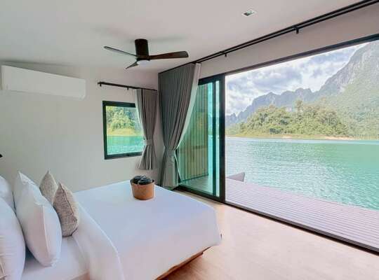 Set right on the waters of Cheow Lan Lake (yes, literally floating) this hideaway sits in one of the most jaw‑dropping pockets of Khao Sok National Park, surrounded by towering limestone cliffs and rainforest‑covered mountains. Getting there is half the adventure: you’ll hop on a long‑tail boat from Cheow Lan Dam pier and cruise across the lake until the resort appears like a dreamy little floating village you get to call home for a few days.