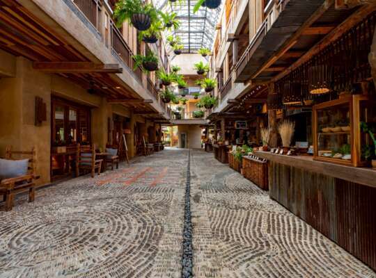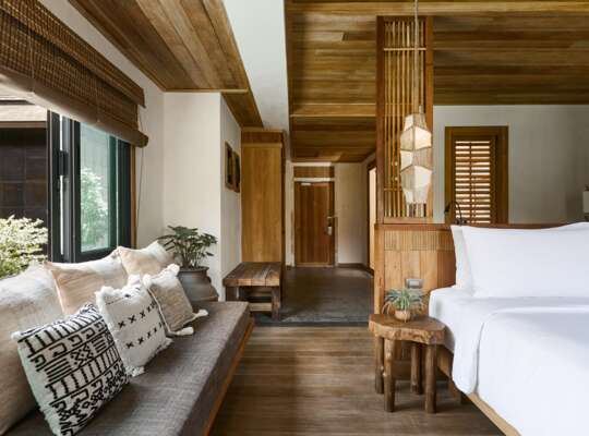 Natural materials, greenery, and open spaces give the whole resort an easy-going tropical feel
