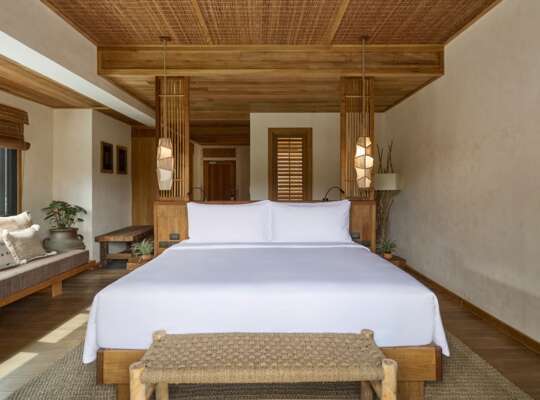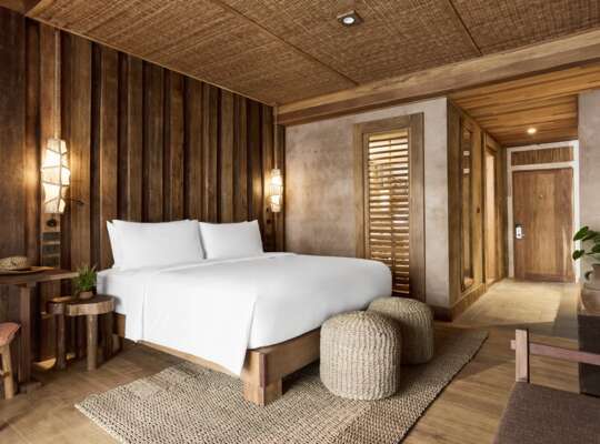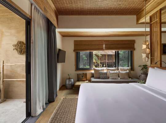 Natural materials are abundant throughout, with plenty of wood and stone finishes making everything feel gorgeously tactile. Soft neutral colours and wide windows help bring the outside in, while balconies and terraces give you somewhere to sit with a sea breeze or the sound of the surrounding jungle. Some rooms have direct access to a pool, which makes a quick swim before breakfast feel like a perfect way to start the day, while the villas add extra space and private pools for anyone who prefers a quieter corner of the resort.