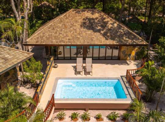 Three individually laid out, two-storey villas that are surrounded by the jungle and gardens, each with three bedrooms and a pool on the terrace.