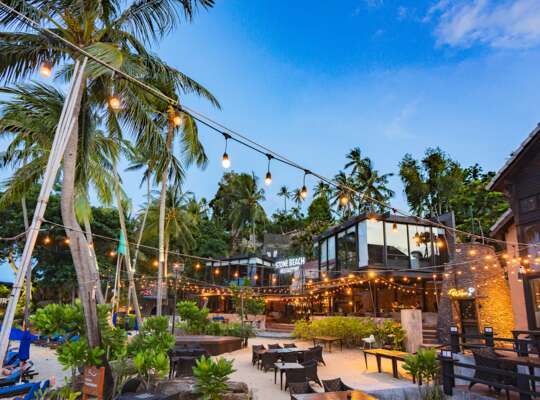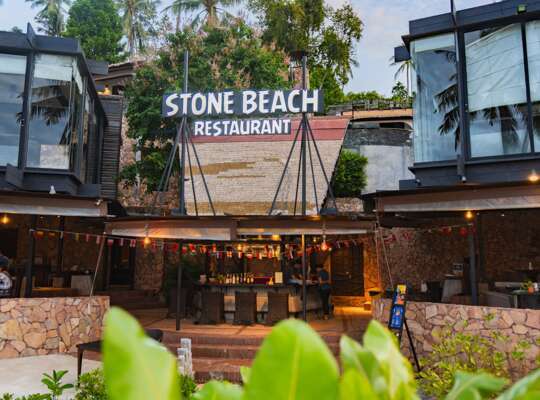 Soft golden sands and rolling ocean waves serve a jaw-slacking outlook at Stone Beach Restaurant. This open-air oasis is the epitome of al fresco dining, with a menu of dishes from Thailand and beyond. There’s also a BBQ available every night, as well as music and a live show.