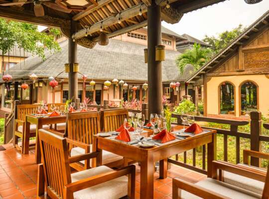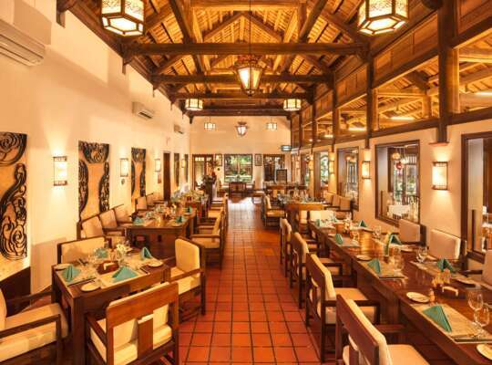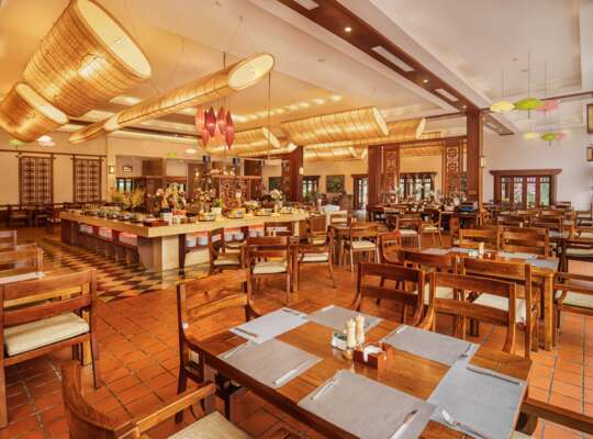 The resort’s main restaurant serves Vietnamese dishes from across the country in a traditional setting.