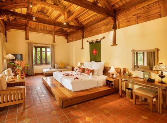 Families will find it very comfortable here, particularly if you book the Duplex Room. Its mezzanine layout gives parents and children a bit of separation, while the balcony and small garden patio add useful outdoor space. The resort also runs a kids club and activities often include hands-on workshops* such as painting hats or bags, making candles, and simple craft sessions linked to Vietnamese folk art. Dining is straightforward for families too, with Vietnamese dishes alongside wider Asian and Western options, so you’re not negotiating every meal like a diplomatic summit. Add in the pools, bikes for both adults and children, and the wide-open grounds, and it’s an easy place for families who prefer nature and space over full-on resort entertainment.