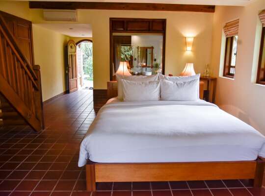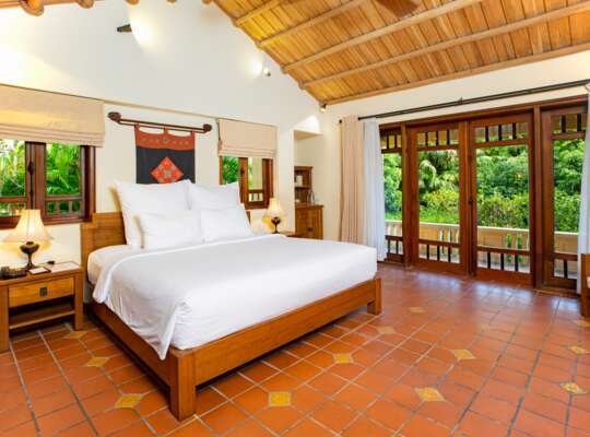 Rooms follow the same Tonkin village aesthetic as the rest of the resort, so expect a style that feels traditional and characterful. Superior rooms are the entry-level option and a sensible choice if you’ll spend most of your time out exploring. Deluxe rooms are noticeably larger and feature a private patio with an outdoor shower. Duplex rooms work well for families thanks to their mezzanine layout and beds setup, while the President room offers separate living space.