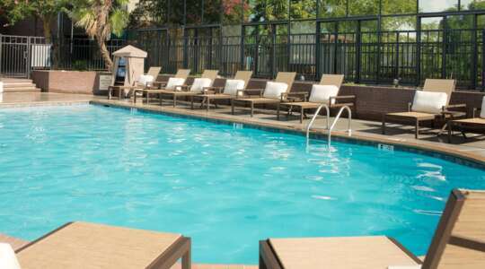 A modern riverfront hotel with an outdoor pool and easy access to the city’s major highways.